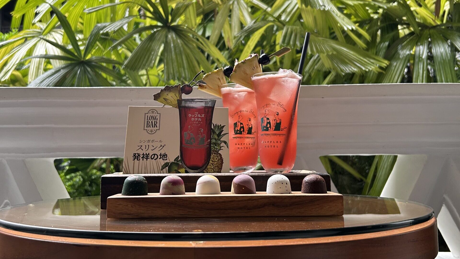 ウェルカムドリンクの「シンガポールスリング」をいただき、優雅な時間が始まりました。