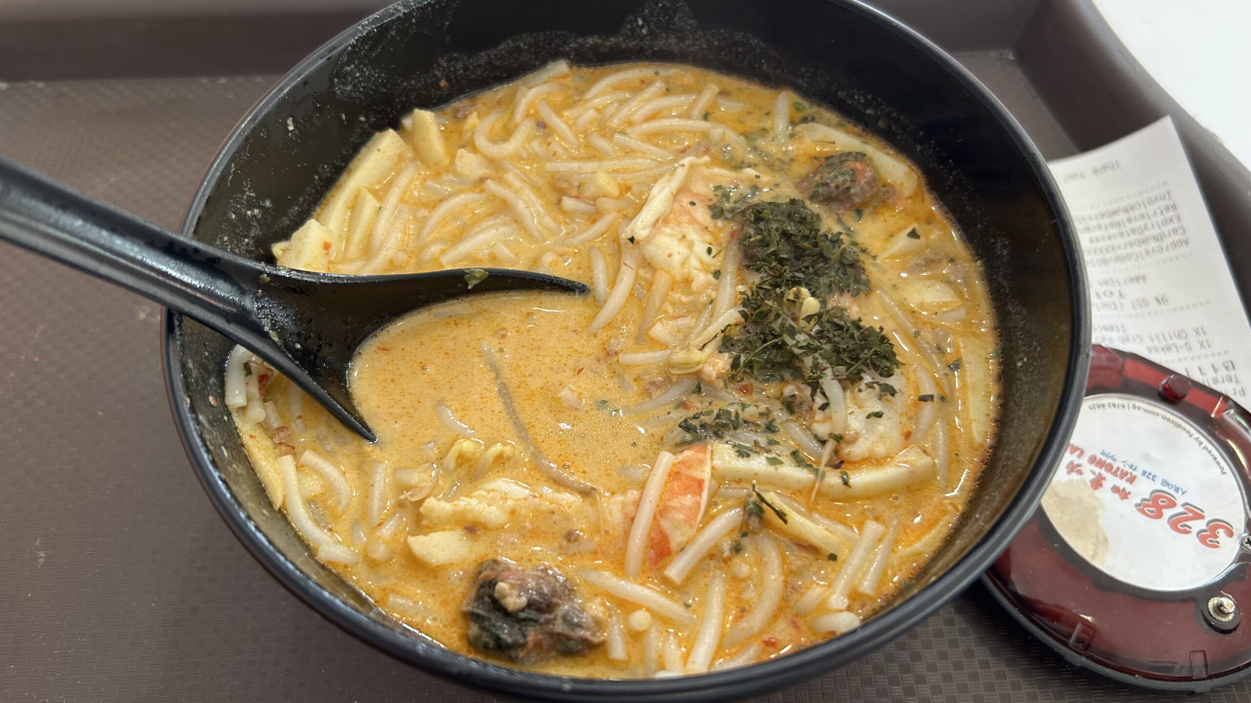 ココナッツの香りが広がるスープに麺が絡み、独特のスパイスがクセになる美味しさです。