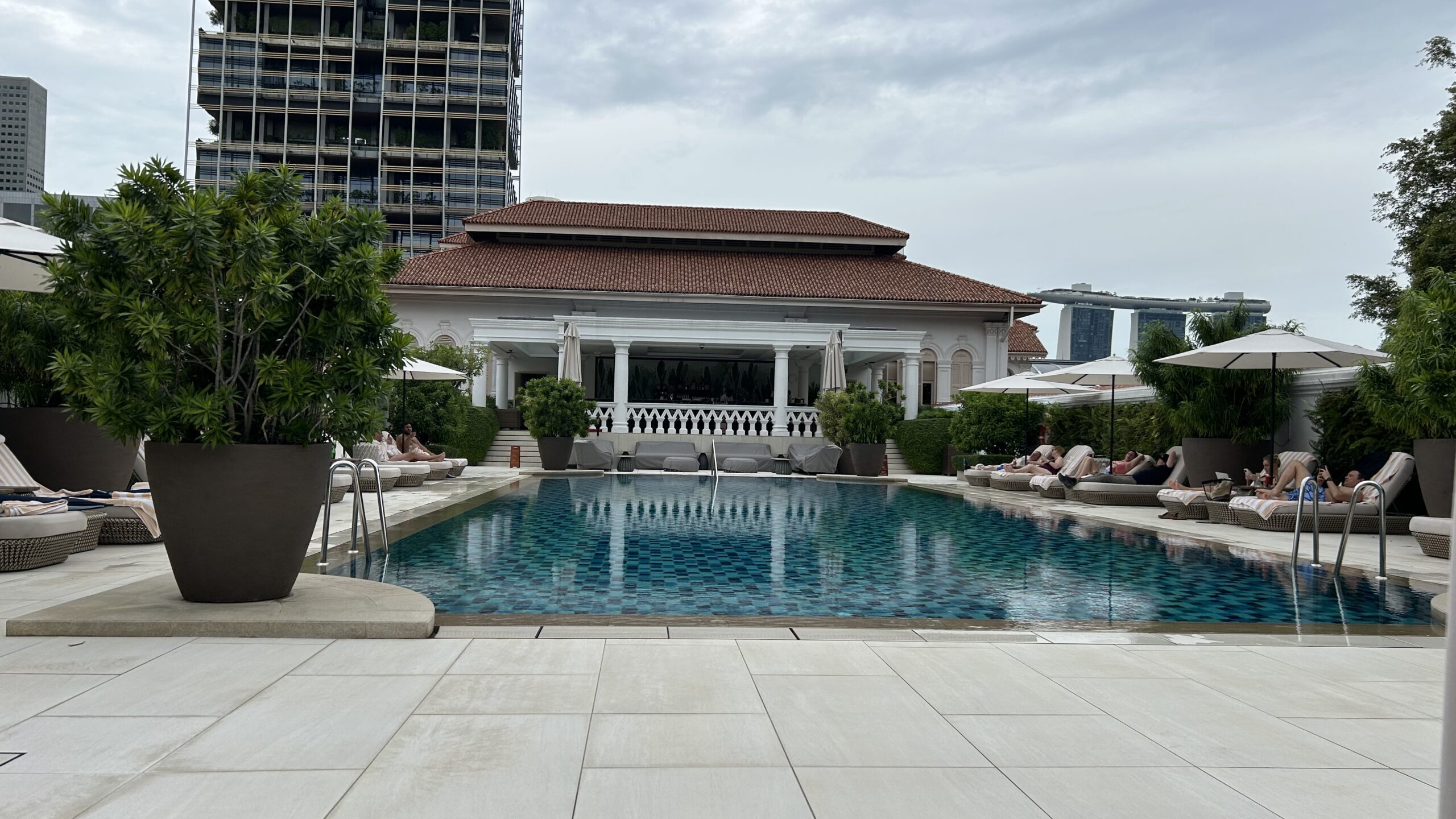 ホテルに戻った後は、ラッフルズの敷地を探検し、屋上プールでのんびり。