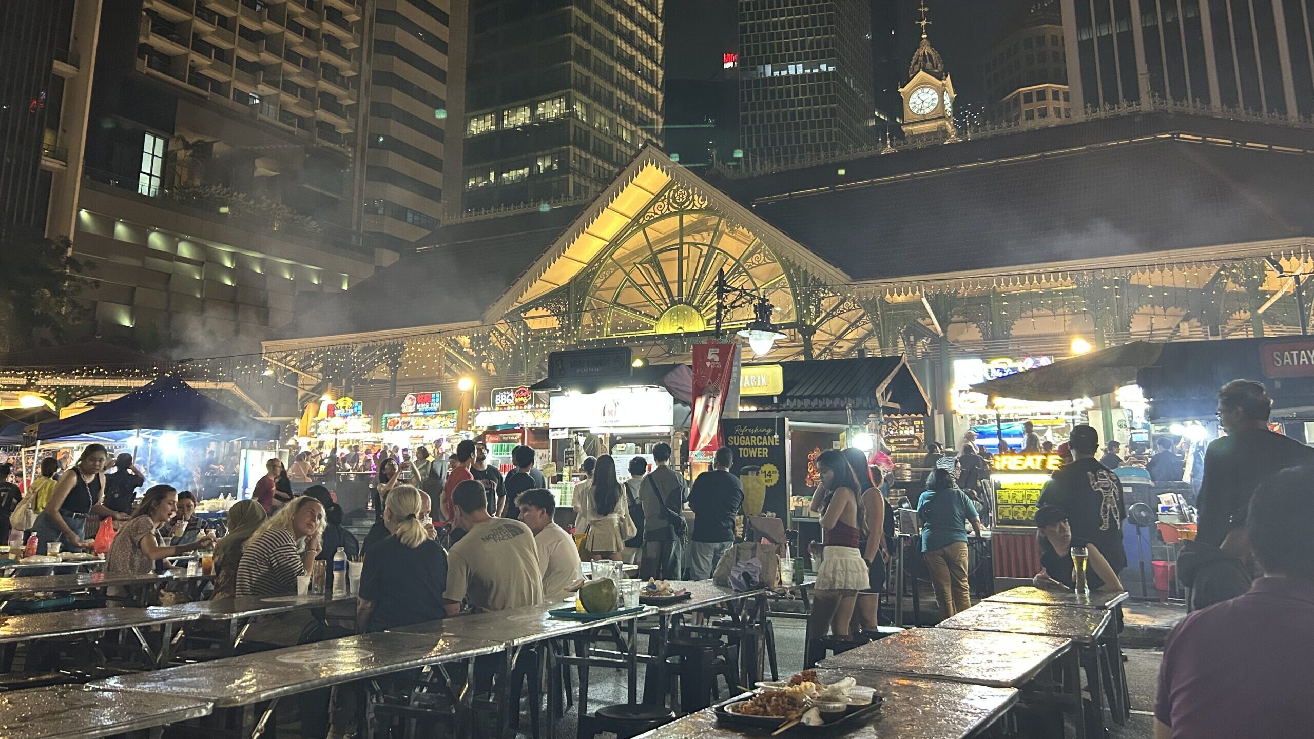 活気あるホーカーの雰囲気は、シンガポールの夜を象徴するものです。