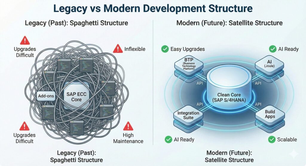 - なぜ価値が下がるのか: SAPが掲げる**「Clean Core(クリーンコア)」**概念により、中核を汚すアドオンは「アップグレードを阻害する悪」と見なされるようになりました。